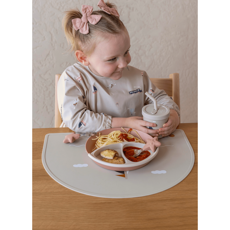 Naše silikonové prostírání je skvělým pomocníkem při "samokrmení" a má velikost tak, aby se vešlo na většinu pultíků standardních jídelních židlí - pomůže udržet nádobí na místě a omezit rozlití.