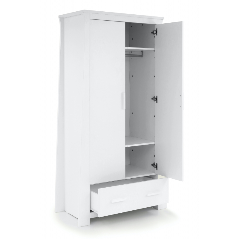 Prostorná šatní skříň Vancouver je vybavena integrovanou spodní zásuvkou pro uložení dětského oblečení a závěsnou tyčí, která umožní pověsit např. kabáty a bundy vašeho dítěte.