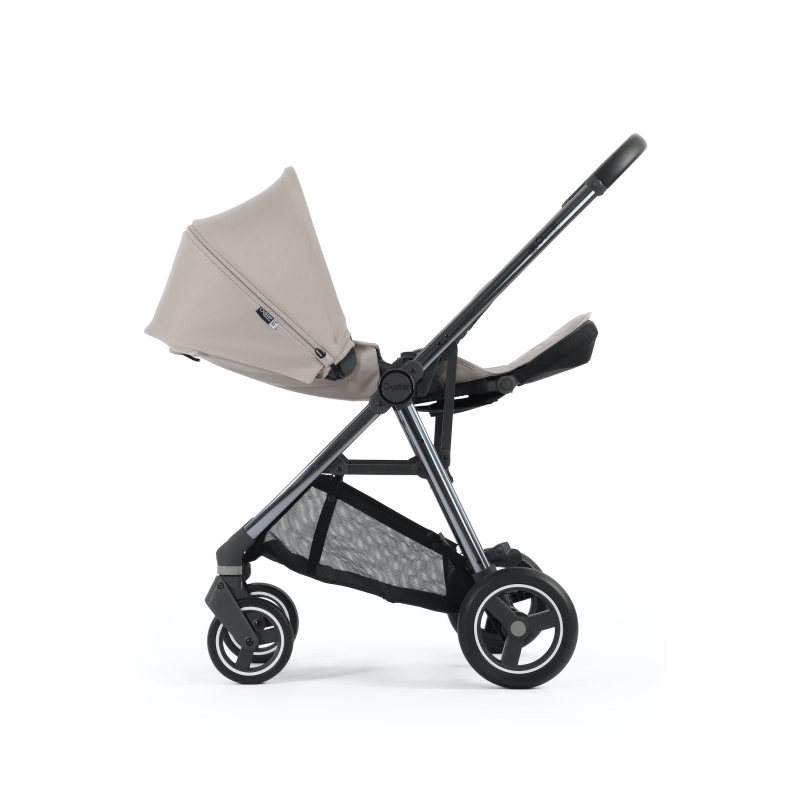 Oyster Gravity+ je kompatibilní s hlubokým dílem Oyster a dalšími doplňky, jako je organizér na kočárek nebo batoh Oyster – ve stejném designu textilií jako je kočárek.