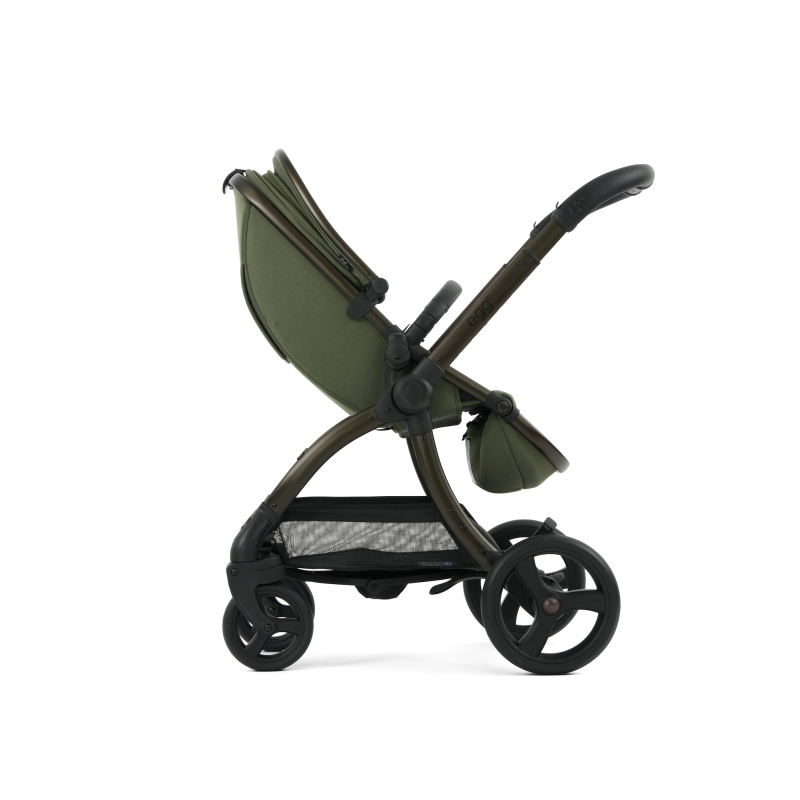 Sedací část egg3® nabízí tři polohy sklonu a je na rámu posazena buď po směru jízdy, nebo proti směru jízdy směrem k rodiči. Sedací část je navržená tak, aby byla co nejpohodlnější na delší procházky. K ještě většímu ulehčení obsluhy kočárku obsahuje sedací část egg3® nové bezpečnostní popruhy s možností utáhnutí tzv. na jeden zátah. Stačí dítě upoutat a zatáhnout za popruh, aby bylo vždy dokonale zajištěno v sedací části. Sedací část je také vybavena snadno nastavitelnou opěrkou hlavy a bezpečnostními pásy, k nimž se přistupuje diskrétně přes zadní část, aby rostla spolu s vaším dítětem.