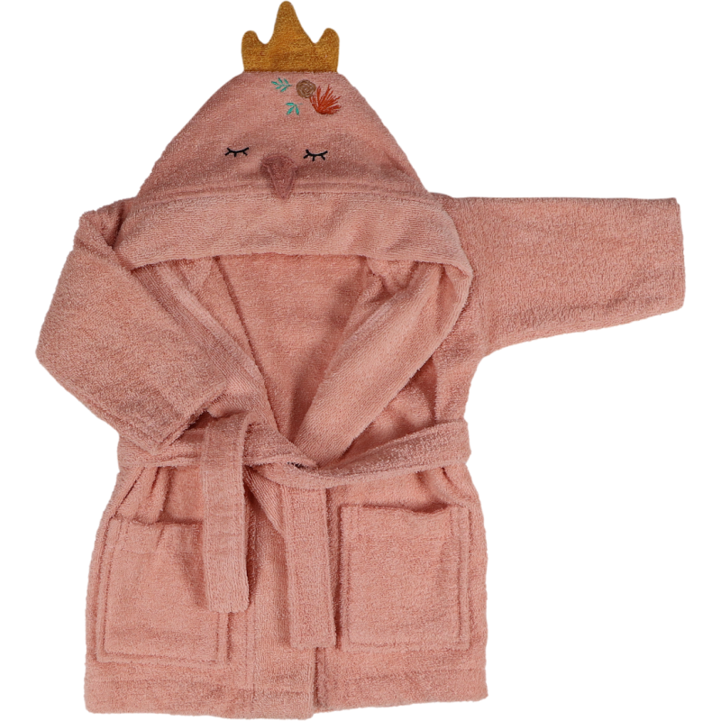 This bathrobe has a cute face and the little crown of Swan Ivy when the child puts on the hood.