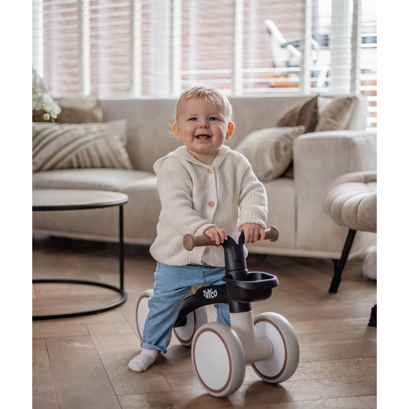 A running bike is the ideal in-between step toward learning to ride a bike. Luna is a genuine first bike; with its 4 wheels, it is suitable for toddlers from 12 months already. They can develop their first cycling legs and balance without any worry and above all with a lot of fun.