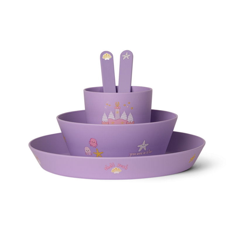 Our new set of tableware is made of PLA, a plant-based bioplastic that doesn't use toxic materials to provide shatter-resistance and a longer life span to your product. The exclusive print on each item helps them be part of the same product story.