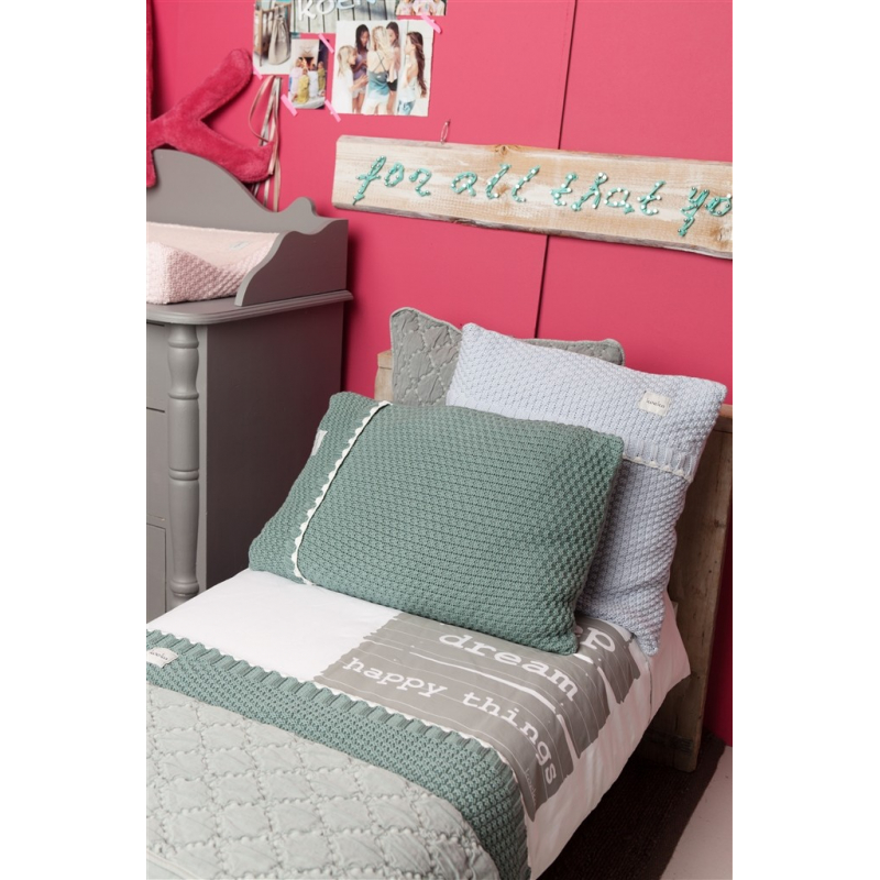 Pletený povlak na polštář má elegantní vzhled, díke kterému vám úomůže vyzdobit váš obývací pokoj nebo ložnici. Zadní strana je pletená trikot stehem. Díky diskrétně umístěnému zipu na boční straně lze povlak snadno vyčistit. Všechny bílé ozdobné okraje (lemování) jsou pletené ručně. Proto je každý výrobek z řady Valencia jedinečný!