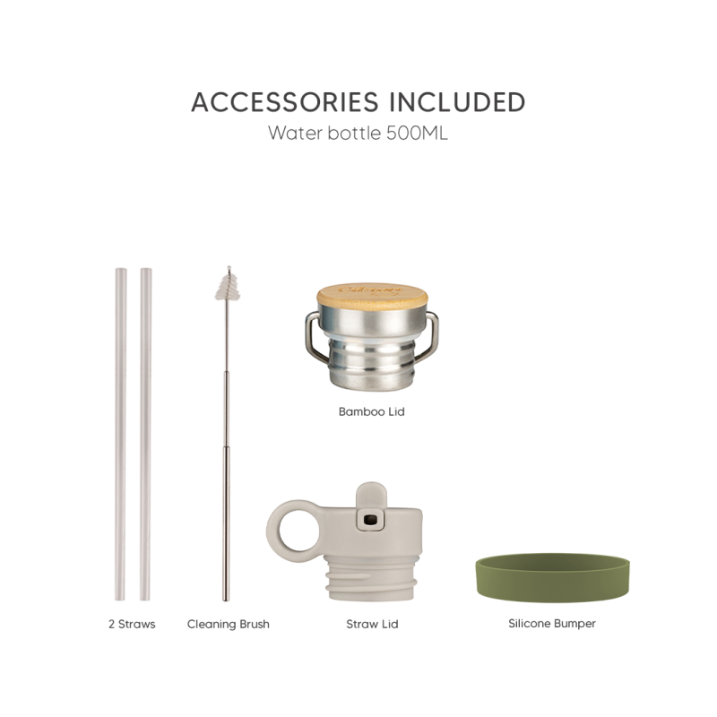 • Comes with 1 cleaning brush, 1 silicone bumper, 1 bamboo lid, 1 straw lid and 1 extra straw