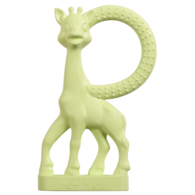 Vyrobená z mäkkého a poddajného materiálu s príjemnou vanilkovou vôňou. Mnoho žuvacích častí s multi-textúrovaným povrchom pre jemnú masáž ďasien. Vďaka jej krúžku ju možno ľahko a jednoducho uchopiť.