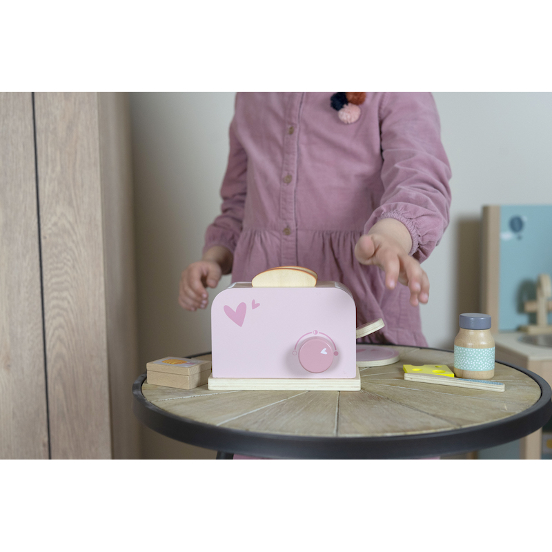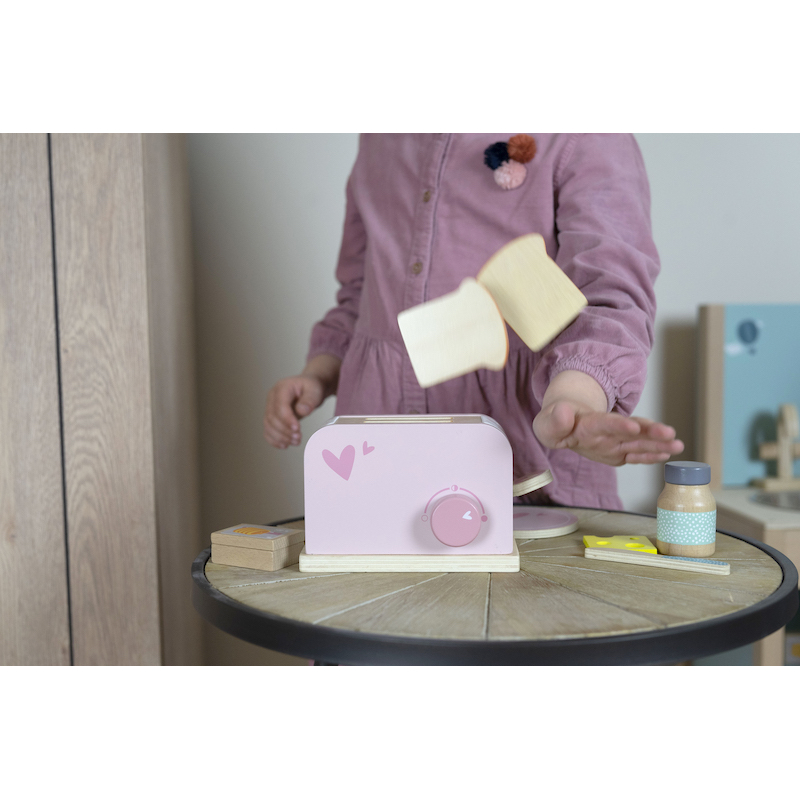 Tiež milujete príjemné chvíle u raňajok s rodinou? S týmto úžasným hriankovačom vaše dieťa pripraví tie najlepšie toasty a naservíruje ich s prílohou podľa vlastného výberu. Toaster je vyrobený z vysokokvalitného dreva s certifikátom FSC v kombinácii s farbami na vodnej báze, ktoré sú úplne vhodné pre deti.