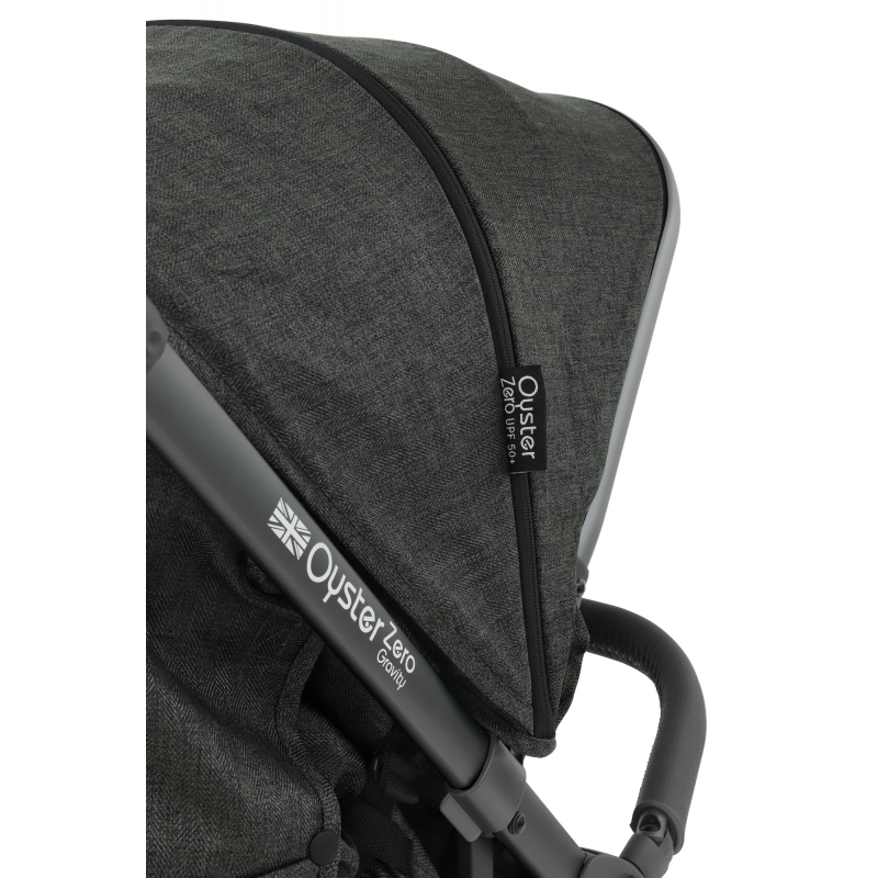 Oyster Zero Gravity ďalej zahŕňa 5-bodové bezpečnostné pásy s polstrovaním a veľkú striešku z textílie s ochranou UPF 50+, ktorú možno predĺžiť.