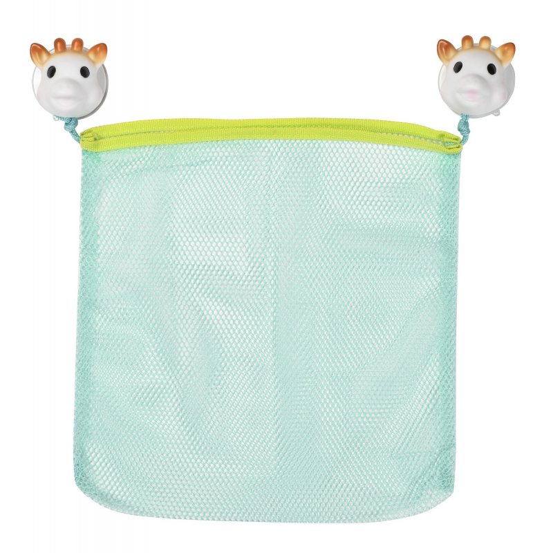 - praktickú sieťku na uchovanie hračiek po kúpeli. Sieťka obsahuje 2 prísavky v tvare žirafy Sophie pre jednoduché uchytenie na bočnú stranu vane.