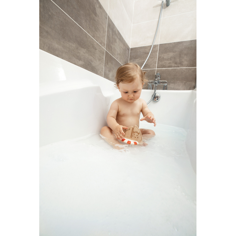 Nová hračka do vane je vyrobená zo 100% prírodného kaučuku a kaučukového dreva. Loďka si pláva na vode a vďaka záchrannému kruhu určenému na žuvanie (odnímateľnému a vyrobenému zo 100% prírodného kaučuku) je zábava v detskej vaničke zaručená!