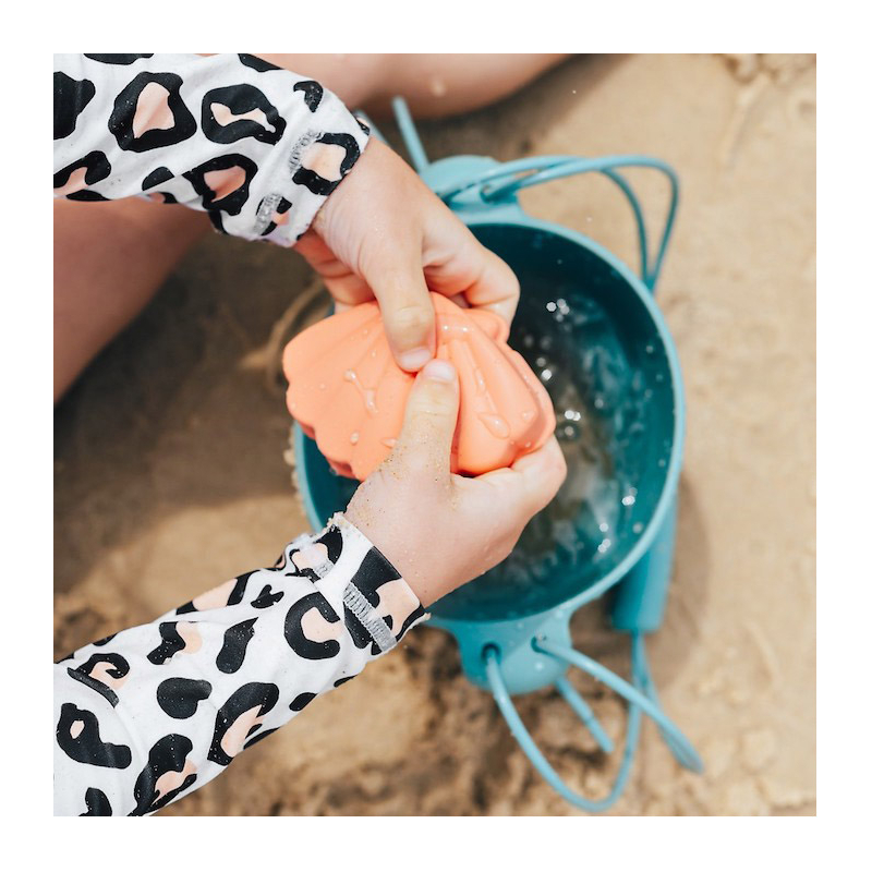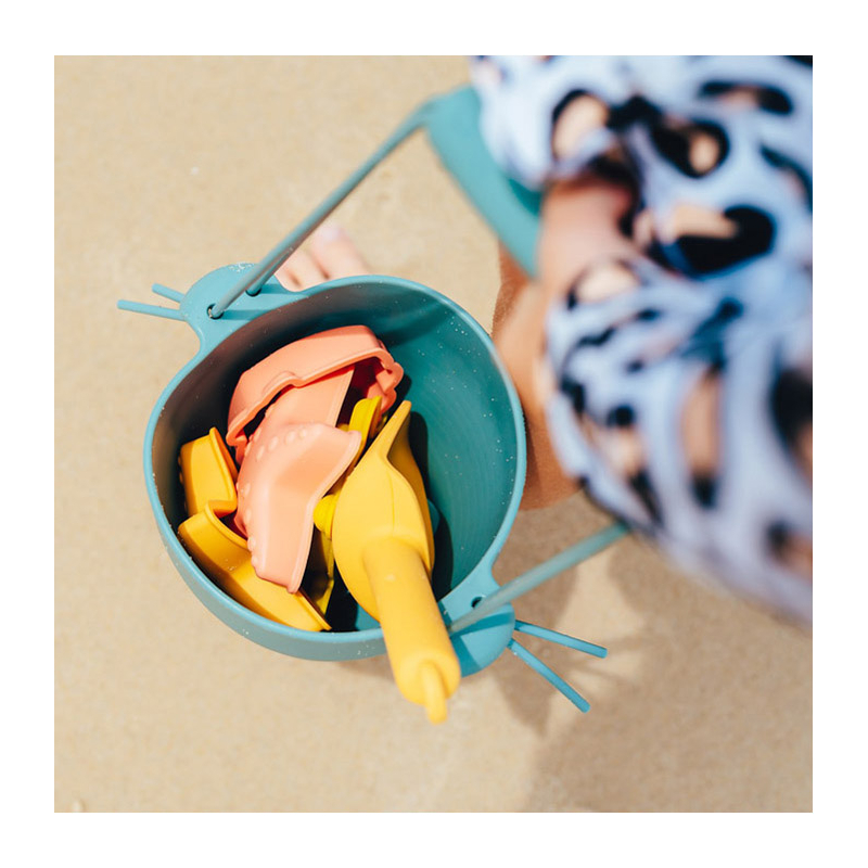 Táto sada je vyrobená z potravinárskeho silikónu a obsahuje vedierko s odolnými dlhými rúčkami, 1 lopatku a 5 formičiek, s ktorými môžu vaše ratolesti rozvíjať svoju kreativitu.