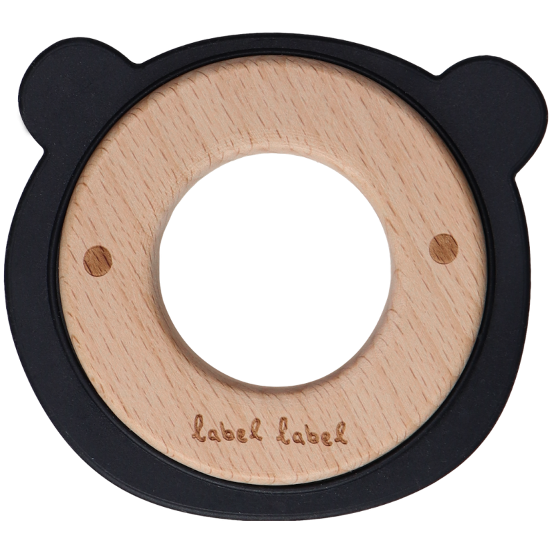 Label Label Hryzačka Medvedík drevo & silikón, čierna
