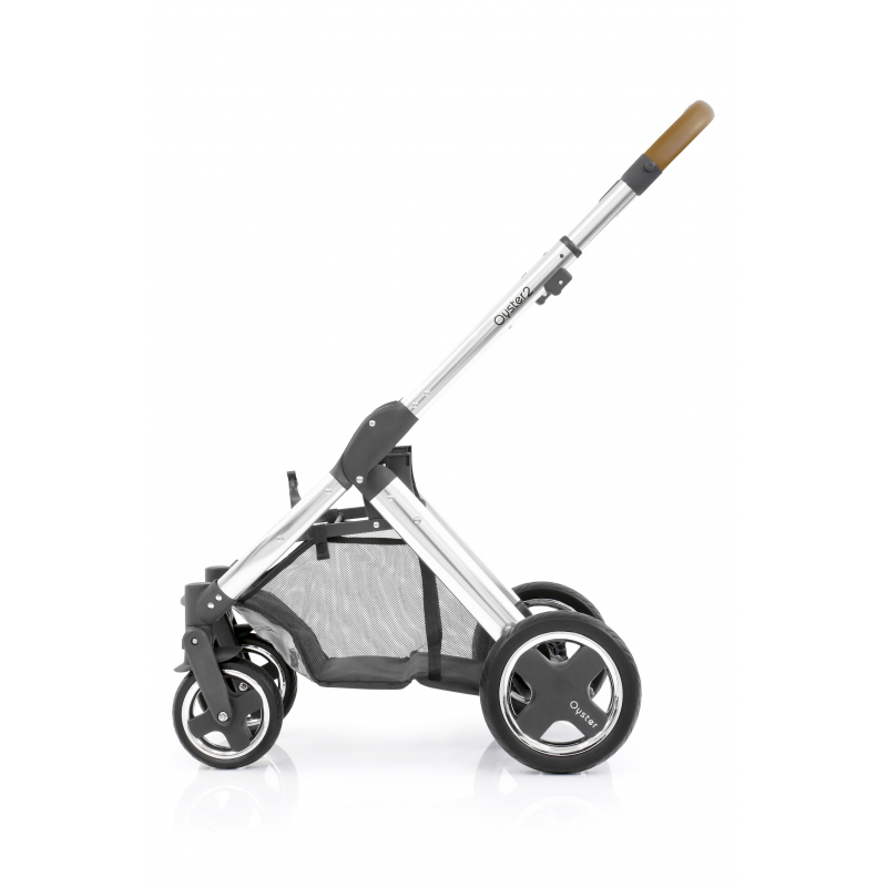 Kočárek Oyster 2 s chromovým rámem Mirror bez stříšky (zahrnuje chromový rám s koženkovou rukojetí, sedací část & pláštěnku)