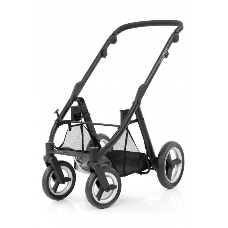 Rám kočárku Oyster MAX je dodáván ve verzi mirror (stříbrný s vysokým leskem) nebo black (sametově černý) s černou sedací částí (s integrovanou moskytiérou), koženkovou rukojetí, madlem, prostorným nákupním košíkem pod sedací částí, pláštěnkou a koly ve vysokém lesku. K rámu je nutné si dokoupit Colour pack k sedací části, který obsahuje stříšku, podložku do sedací části z paměťové pěny, redukční podložku pro novorozence do autosedačky sk. 0+, nánožník a tašku na toto příslušenství v trendy barvách.