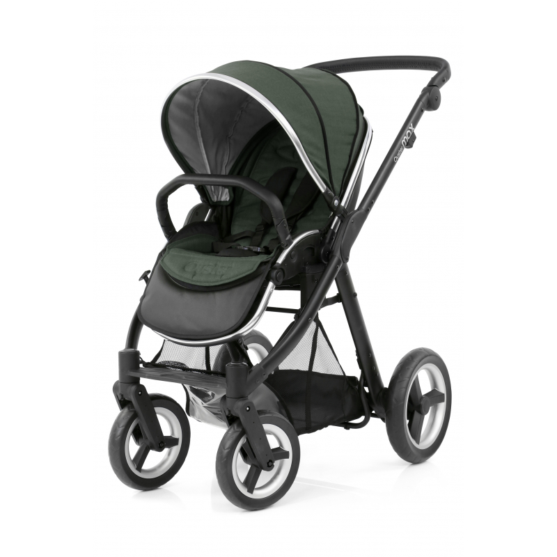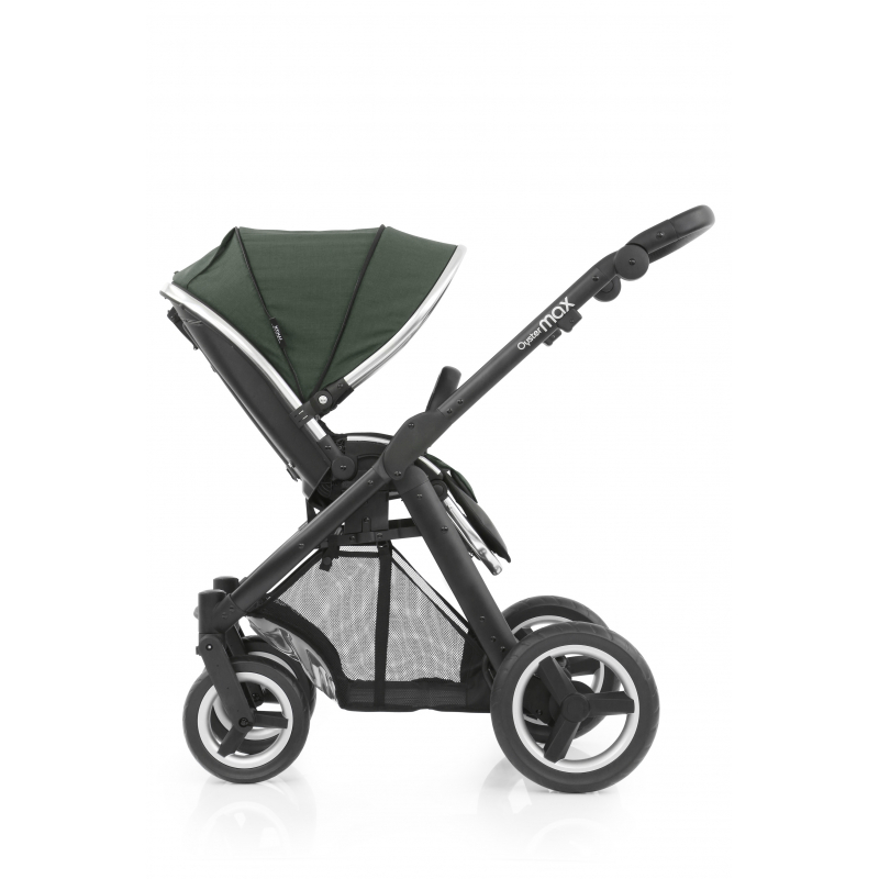 Rám kočárku Oyster MAX je dodáván ve verzi mirror (stříbrný s vysokým leskem) nebo black (sametově černý) s černou sedací částí (s integrovanou moskytiérou), koženkovou rukojetí, madlem, prostorným nákupním košíkem pod sedací částí, pláštěnkou a koly ve vysokém lesku. K rámu je nutné si dokoupit Colour pack k sedací části, který obsahuje stříšku, podložku do sedací části z paměťové pěny, redukční podložku pro novorozence do autosedačky sk. 0+, nánožník a tašku na toto příslušenství v trendy barvách.
