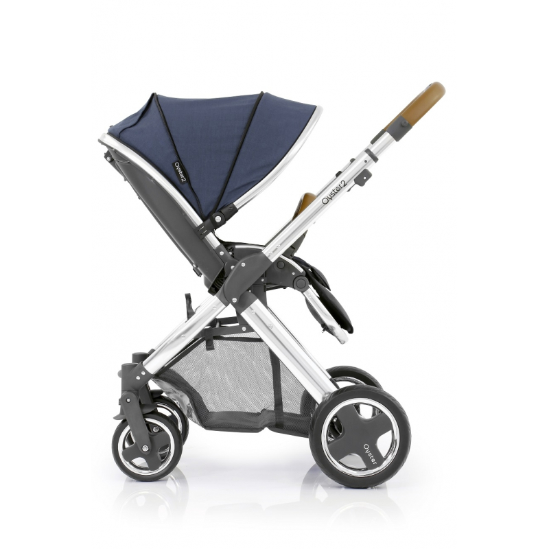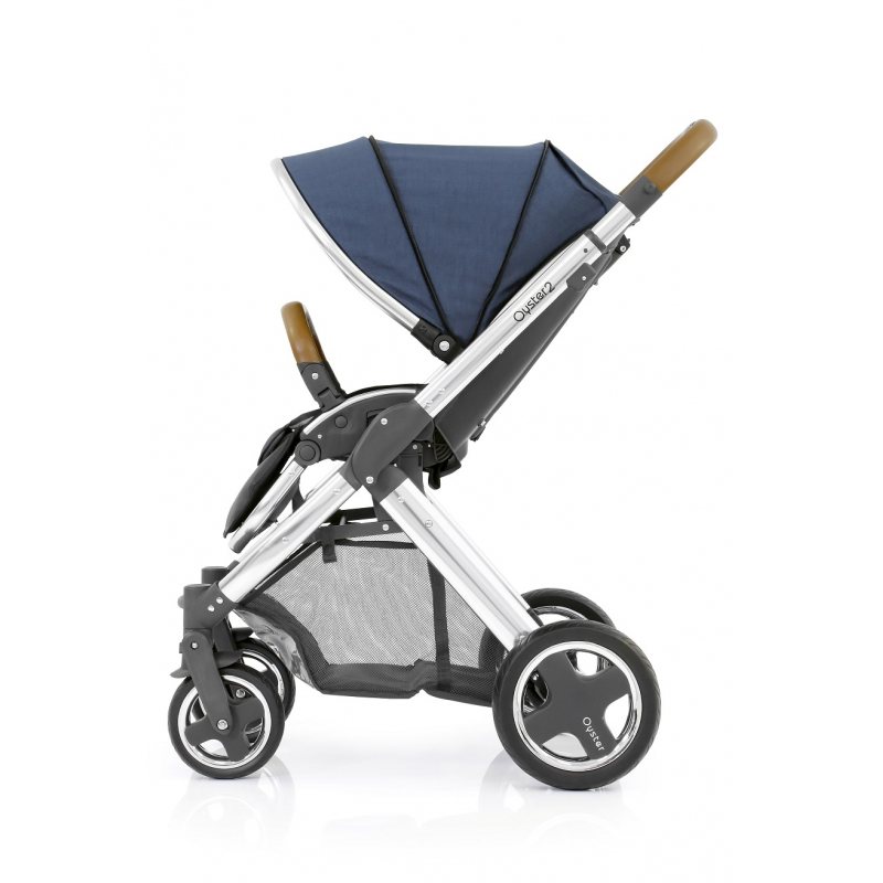 Rám kočárku Oyster 2 je dodáván ve verzi mirror (stříbrný s vysokým leskem) nebo black (sametově černý) s černou sedací částí (s integrovanou moskytiérou), koženkovou rukojetí, madlem, prostorným nákupním košíkem pod sedací částí, pláštěnkou a koly ve vysokém lesku. K rámu je nutné si dokoupit Colour pack k sedací části, který obsahuje stříšku, podložku do sedací části z paměťové pěny, redukční podložku pro novorozence do autosedačky sk. 0+, nánožník a tašku na toto příslušenství v trendy barvách.