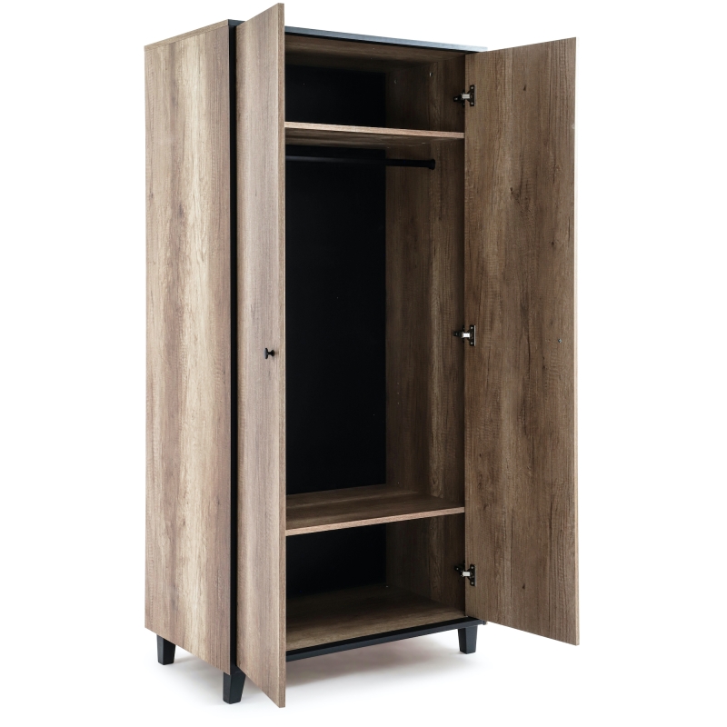 Dvojitá skriňa Montana má vešiakovú tyč a dve police pripravené na usporiadanie vecí vášho dieťaťa a úchytky z brúsenej mosadze. (D 178 x Š 85 x H 53 cm)