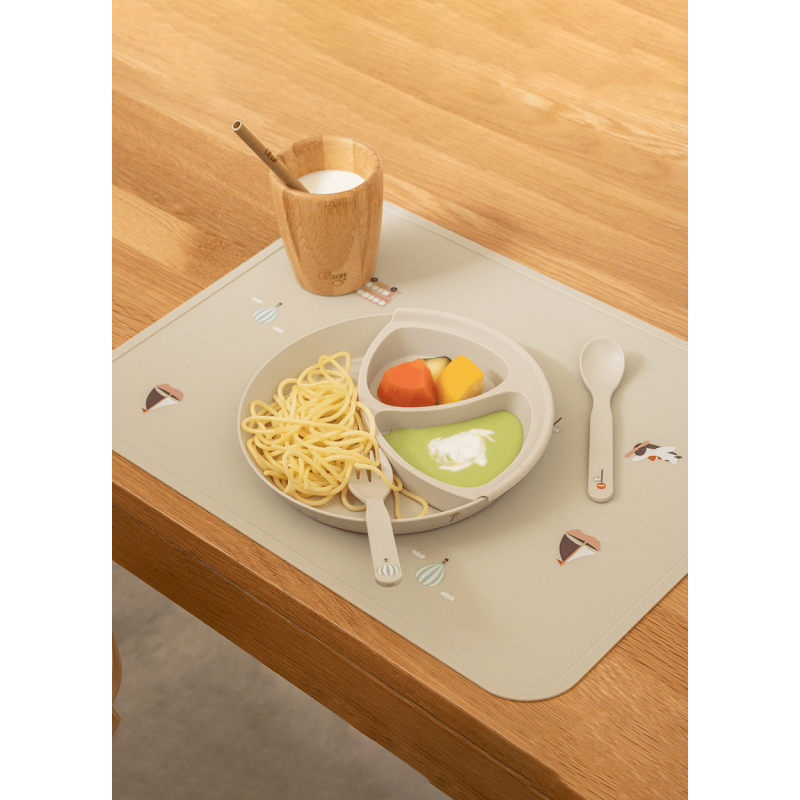 Naše silikónové prestieranie je skvelým pomocníkom pri "samokŕmení" a má veľkosť tak akurát, aby sa zmestilo na väčšinu pultíkov štandardných jedálenských stoličiek - pomôže udržať riad na mieste a obmedziť rozliatie a tiež sa úhľadne zroluje pre ľahké skladovanie.