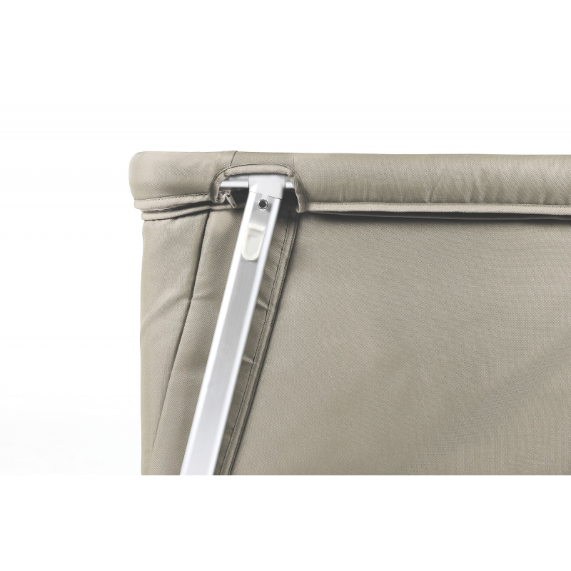 Textilie, kterou lze prát, zaručuje ten nejvyšší možný komfort pro vaše dítě. Od aluminiového rámu ji lze odejmout pomocí zipů. Vnější textilie je vyrobena z polyesteru a vnitřní textilie je z měkké, polstrované 100% bavlny.