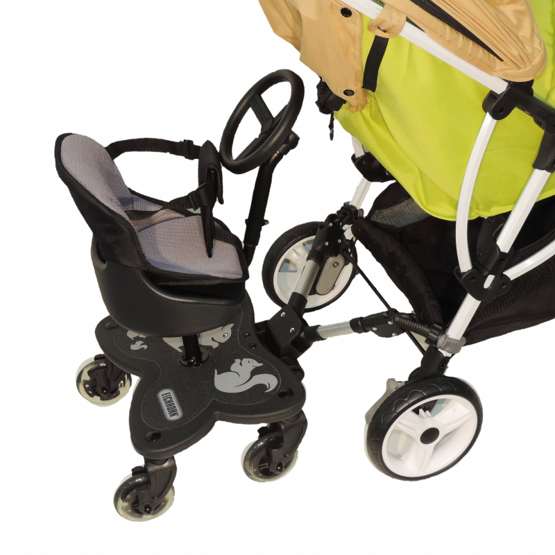 Prídavná doska ku kočiaru Cozy C-Rider so sedadlom a volantom sa stane perfektným pomocníkom na prechádzky s jedným alebo oboma deťmi. Starší súrodenec sa môže posadiť na sedadlo, ktoré je však určené už pre batoľatá, ktoré vedia stabilne sedieť, ale zároveň ešte nedokážu dlhšiu dobu samy stáť, tzn. cca od 9 mesiacov veku. Súčasťou balenia je aj otočný volant pre zábavné cestovanie s kočiarom.