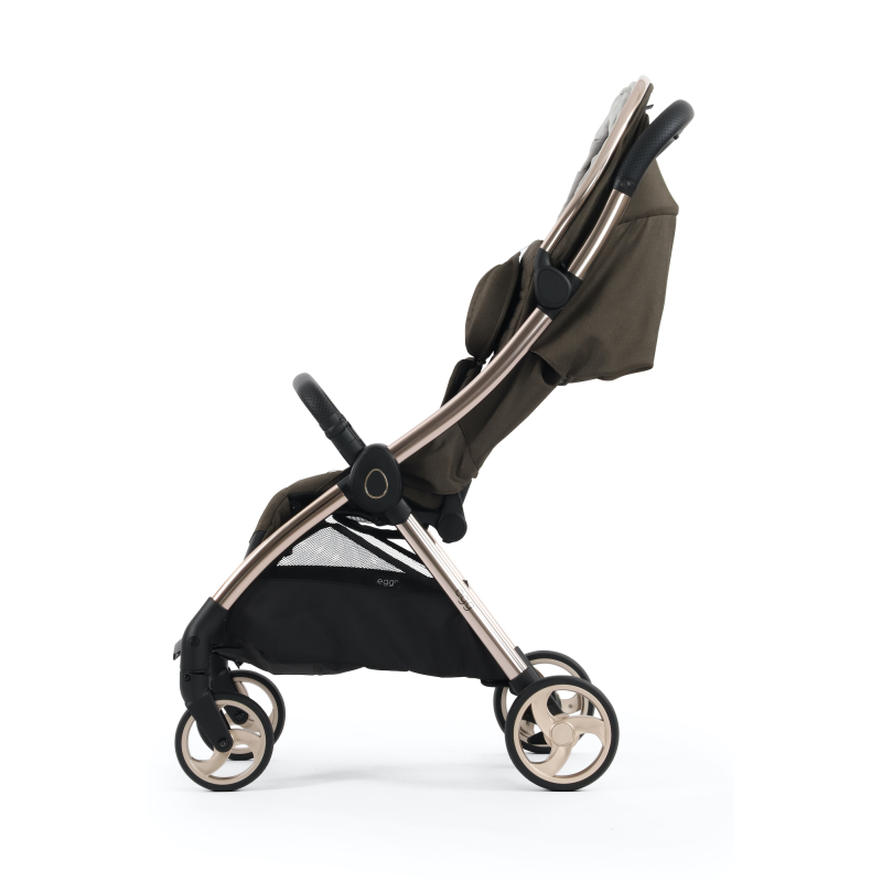 Do rozšíriteľného košíka, ktorý je na malý kočík prekvapivo priestranný, sa bez problémov zmestia veci potrebné na každodenné vychádzky alebo i menší nákup potravín. Kompaktné neprepichnuteľné pneumatiky s dezénom „egg“ zanechávajú výraznú stopu všade tam, kde sa eggZ® dostane, ponúkajú vynikajúcu ovládateľnosť a optimálne hladkú jazdu. Brzdový pedál je vybavený zeleným a červeným indikátorom "semafora" a predné otočné kolesá je možné na prechádzky po nerovnom teréne zaaretovať.