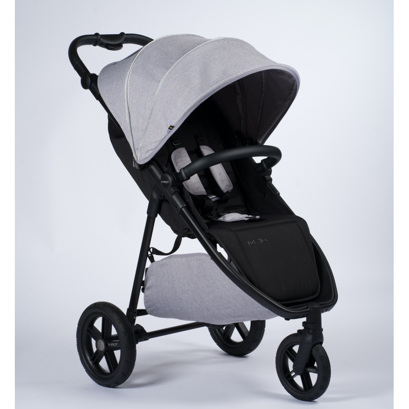 M.3x je náš terénny kočík, ktorý je navrhnutý tak, aby bol pohodlný nielen v meste, ale aj na prašných cestách, a to vďaka vysoko výkonnému systému troch kolies.
